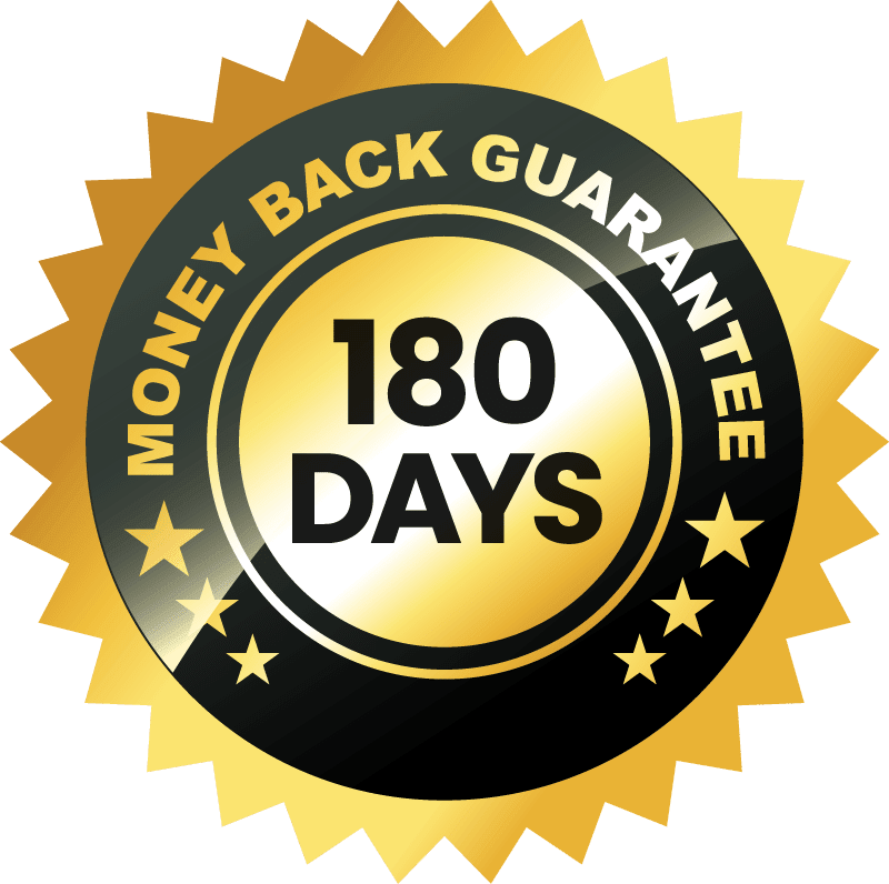 Your order today is protected by my Iron-Clad 180-day 100% money-back guarantee.  No Questions Asked! You can get a FULL REFUND for the next 180 days!