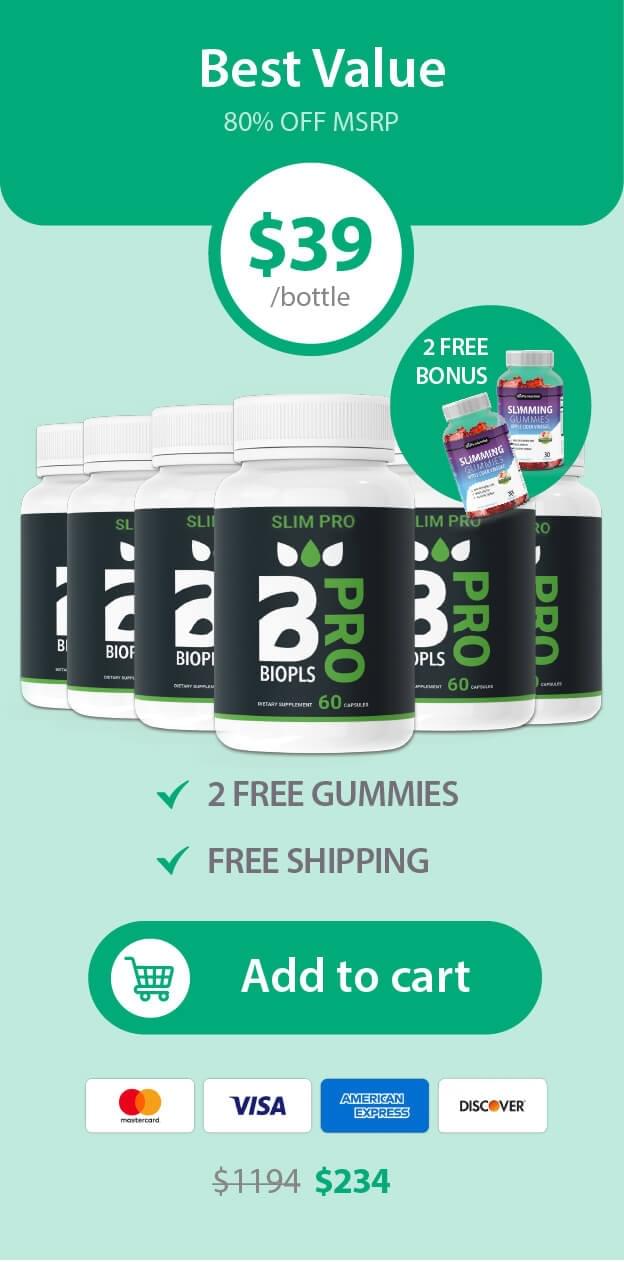 Also we’re paying for your shipping and handling… if you select our 3 or 6 bottle package of Biopls Slim Pro. Which is another $12 savings for you. For our single bottle purchase orders the shipping is $6.99.
